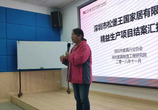 下午2:30~5:30,松堡王國精益生產(chǎn)項(xiàng)目結(jié)案總結(jié)大會在一樓多功能廳舉行。企業(yè)供應(yīng)鏈總監(jiān)唐亞卓、制造中心總監(jiān)程江龍和各部門經(jīng)理及車間班組長,深圳家具制造工程研究院院長劉曉紅及精益生產(chǎn)項(xiàng)目團(tuán)隊(duì),在IE工程師李濤的主持下,共同參與松堡王國精益生產(chǎn)項(xiàng)目結(jié)案總結(jié)大會。