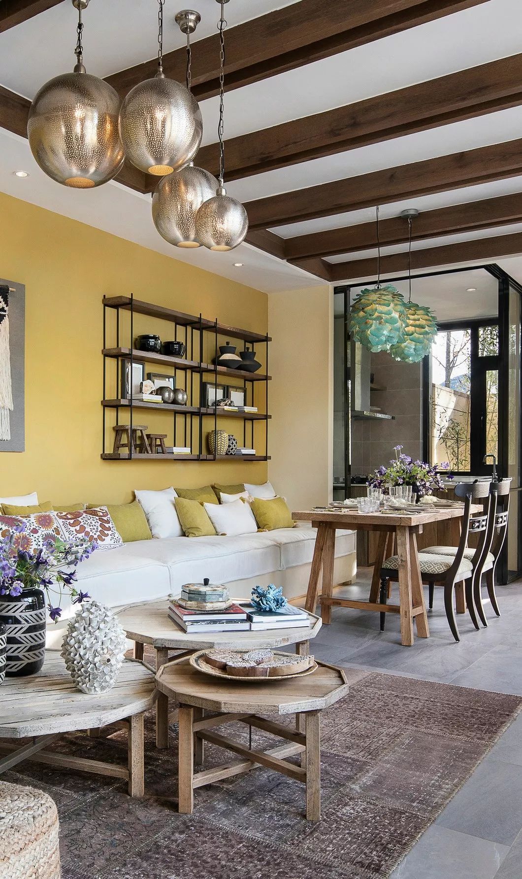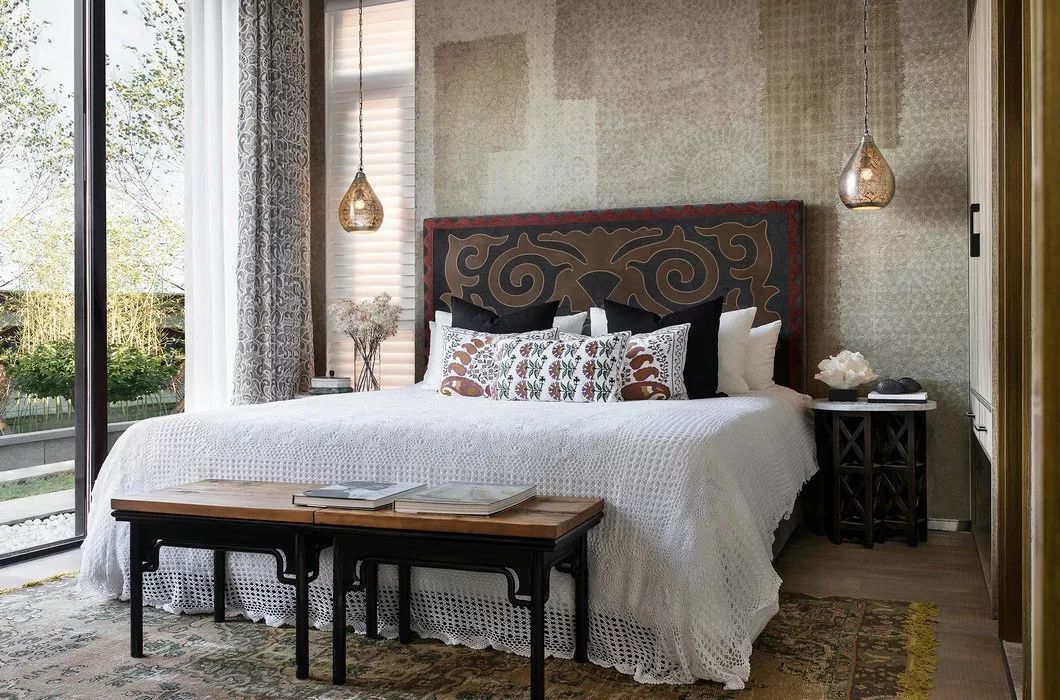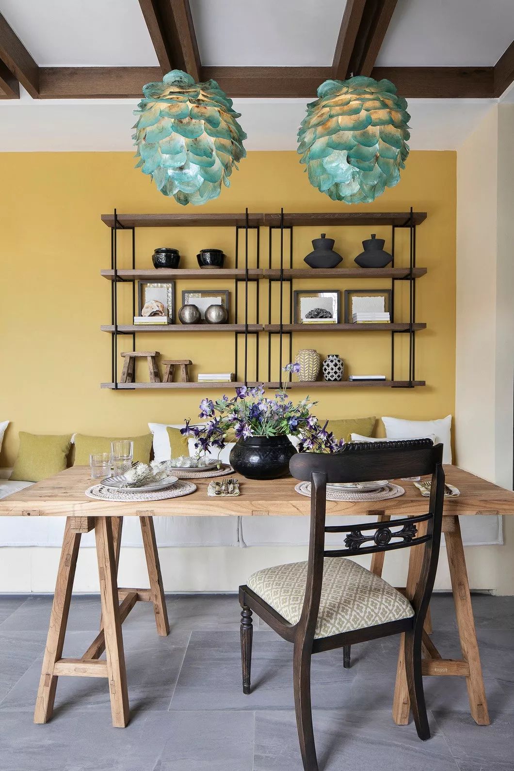 設(shè)計師通過北非設(shè)計元素如毛線編織成的掛畫飾品、紋樣新穎的花樽、民族風(fēng)情印花抱枕等,點染出空間異域夢幻的光彩,同時因浸潤著原木材質(zhì)的清氣,予人安心舒適體驗。