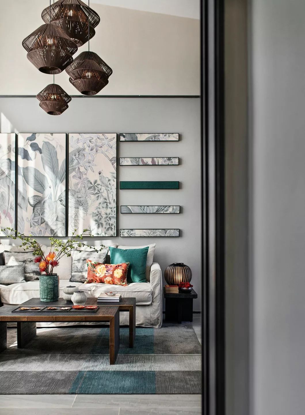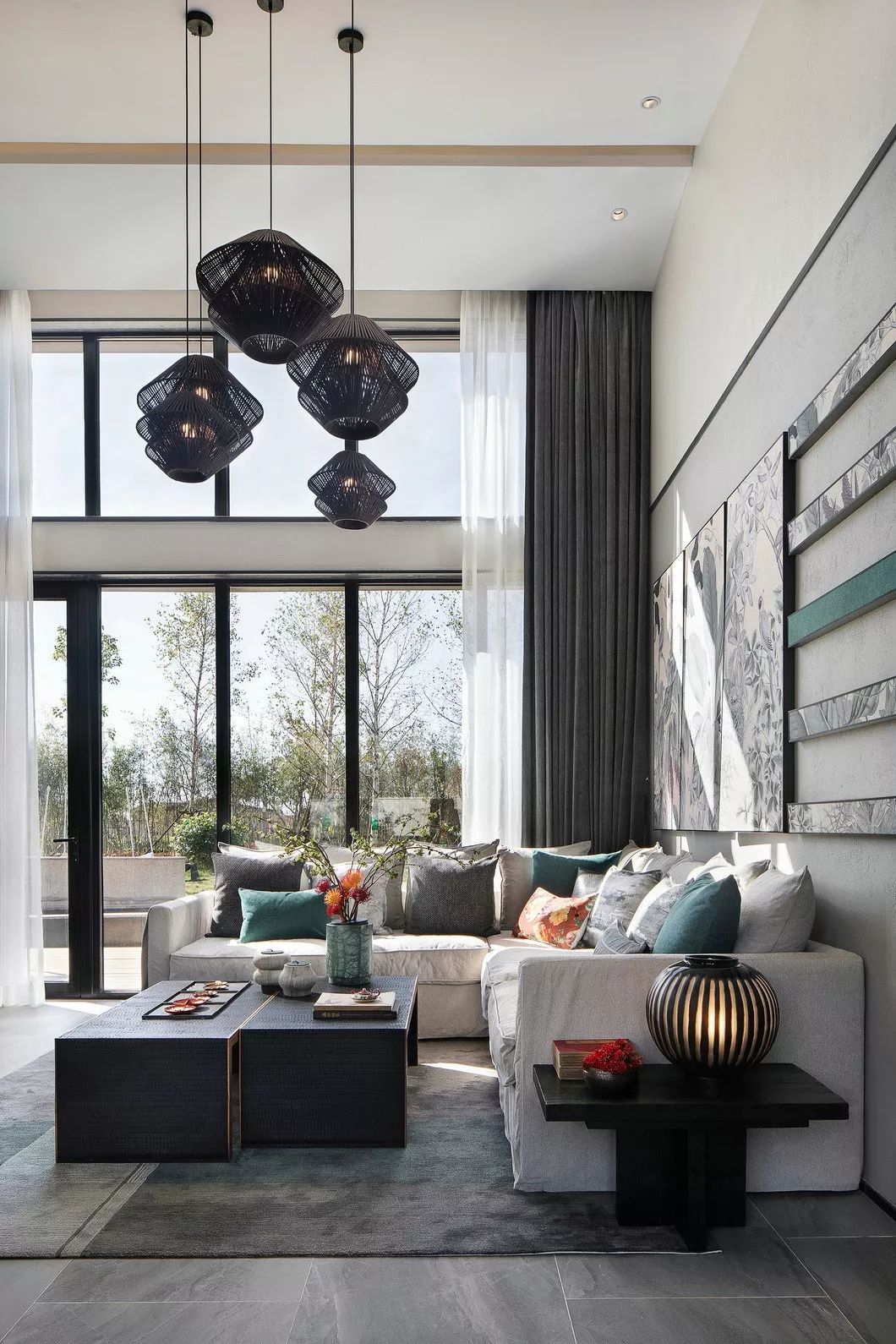 開闊的別墅庭院空間,自然植物綠意盈盈,通透的玻璃門窗消弭了內(nèi)外空間明確的界分感,將四季景致演變?yōu)榭臻g的一部分,每個空間都能享有充足的自然光照。敞亮的客廳,自然與人文氣韻交融,古雅而不乏活力的配色,在沉靜從容中散發(fā)出欣然自在的韻味。