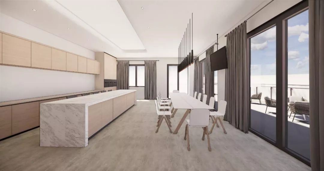 烘焙室簡(jiǎn)單分為烘焙操作區(qū)與圍坐品嘗區(qū),鄰里可協(xié)作烘焙、分享美味,其廣闊空間亦支持開展小型烘焙教學(xué)活動(dòng),觀景陽(yáng)臺(tái)上孩子們玩鬧一團(tuán),歡聲笑語(yǔ)不斷,給美好的午后時(shí)光標(biāo)記上西點(diǎn)味的輕快氣息。