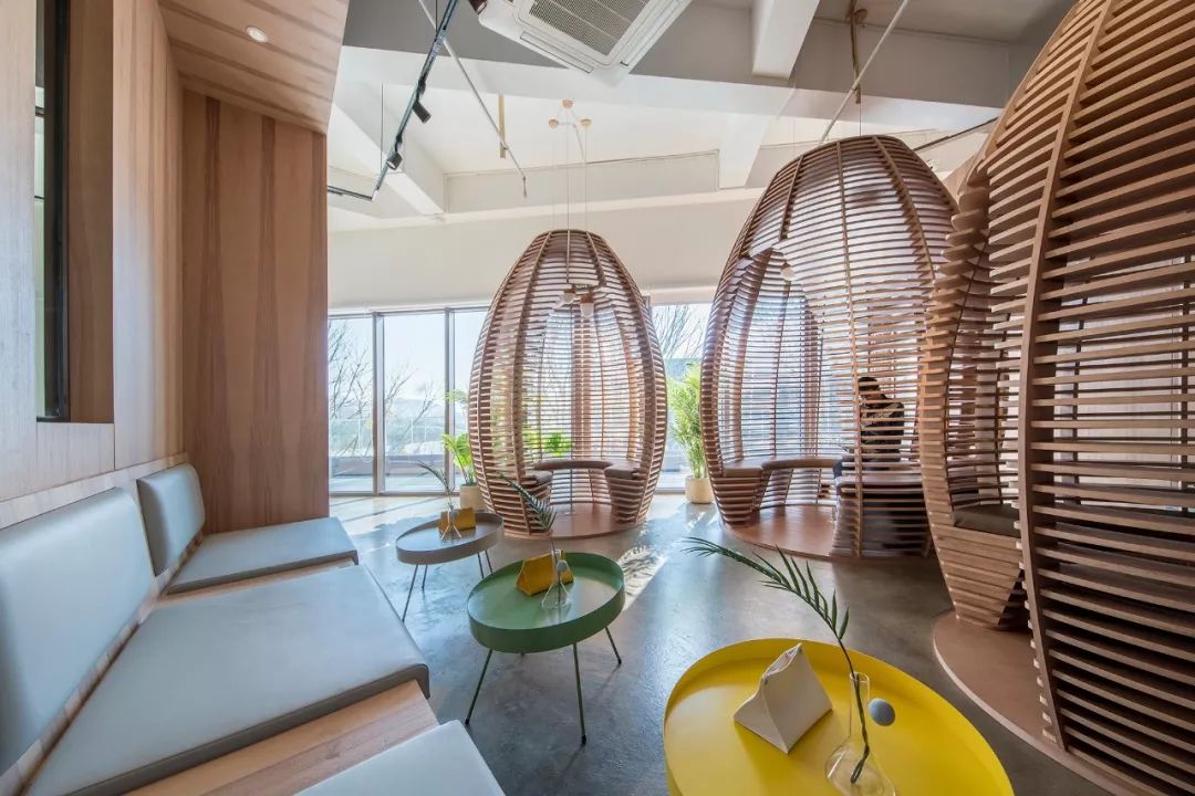 沙龍一隅,設(shè)計(jì)拋開強(qiáng)互動(dòng)的目的性,通過(guò)木藝圍攏出數(shù)個(gè)獨(dú)立的小天地,更多地以靜態(tài)場(chǎng)景表達(dá)一種生活態(tài)度,描摹每個(gè)人靜旎放松的內(nèi)心角落。在這里,你可以沉浸閱讀、欣賞音樂(lè)、放空大腦,或享受陽(yáng)光浴、蝸居一角、與朋友閑聊......閑適自由,好不愜意。