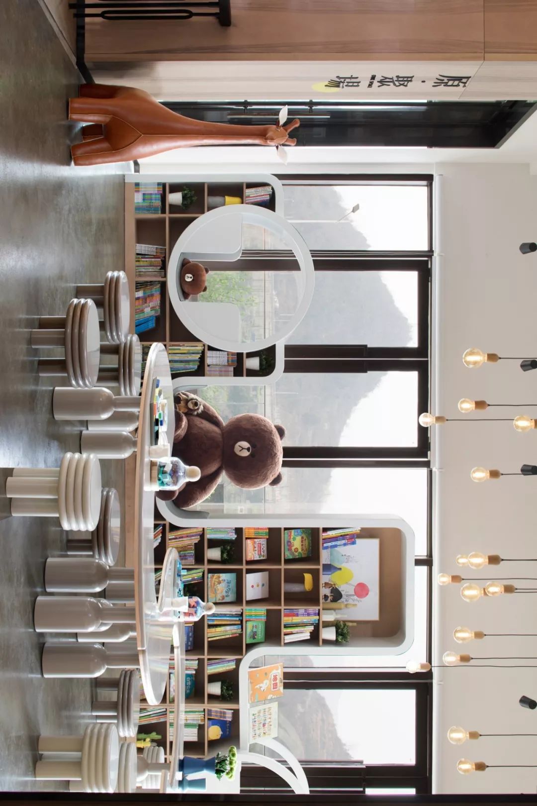 鄰近書塔與閱讀區(qū)搭建的親子互動(dòng)空間,以書為介質(zhì),大人孩童們與大號(hào)布朗熊和Zuny手工動(dòng)物皮玩具為伴,人徜徉在書的海洋里,親子陪伴在溫情之余更添樂(lè)趣,一起度過(guò)休閑自在的悠暇時(shí)光。