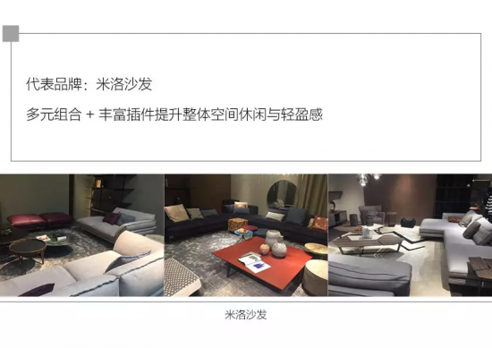 同時(shí),年輕消費(fèi)者對(duì)于沙發(fā)的組合需求更靈活,常見(jiàn)的轉(zhuǎn)角位與直排位已經(jīng)略顯傳統(tǒng),展會(huì)上沙發(fā)的組合形式明顯更加多元,主要表現(xiàn)為: