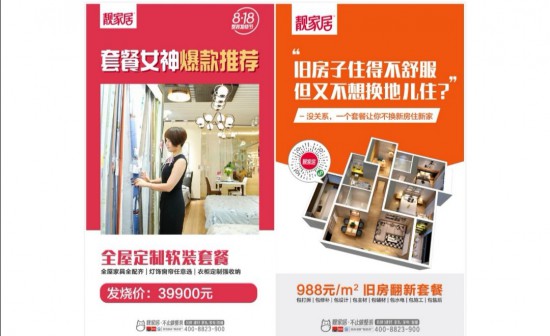 如“818整裝發(fā)燒節(jié)”主推的988元/㎡發(fā)燒版裝修套餐、39900元全屋定制軟裝套餐、988元/㎡舊房翻新版套餐。