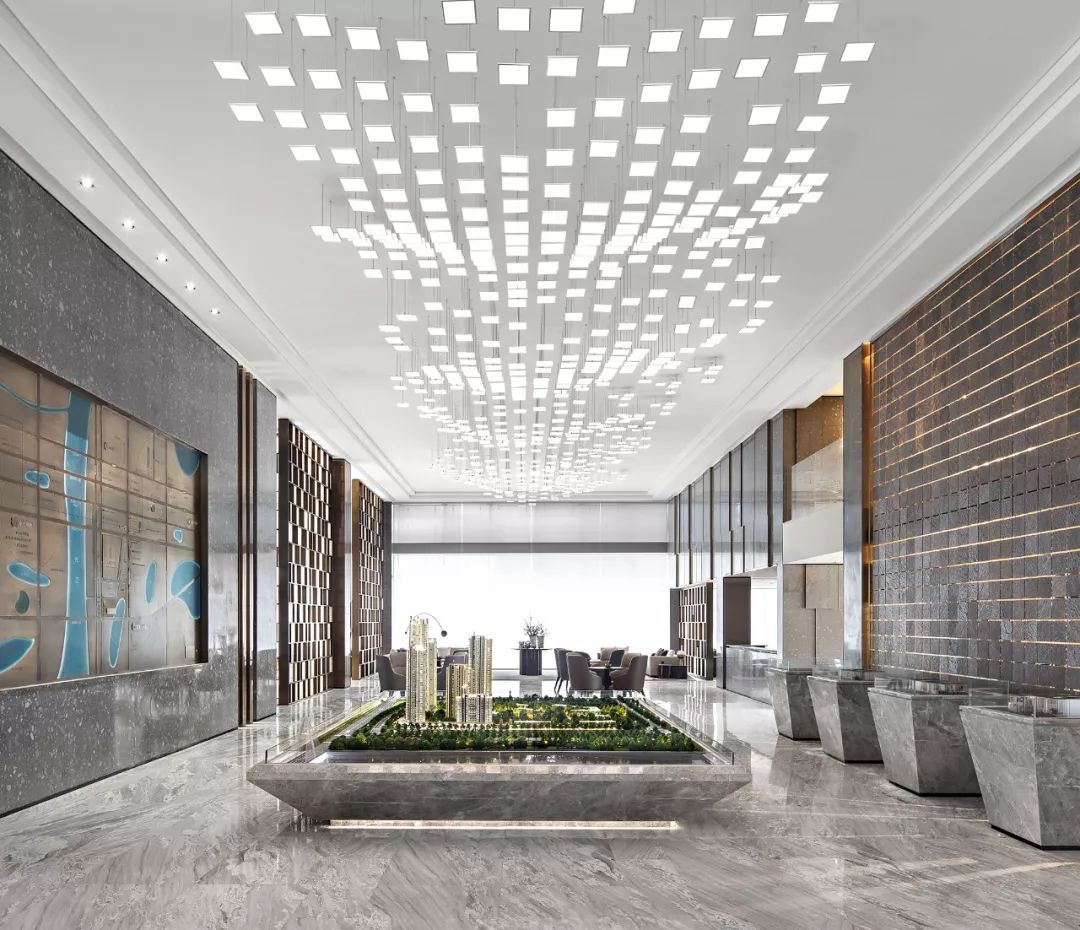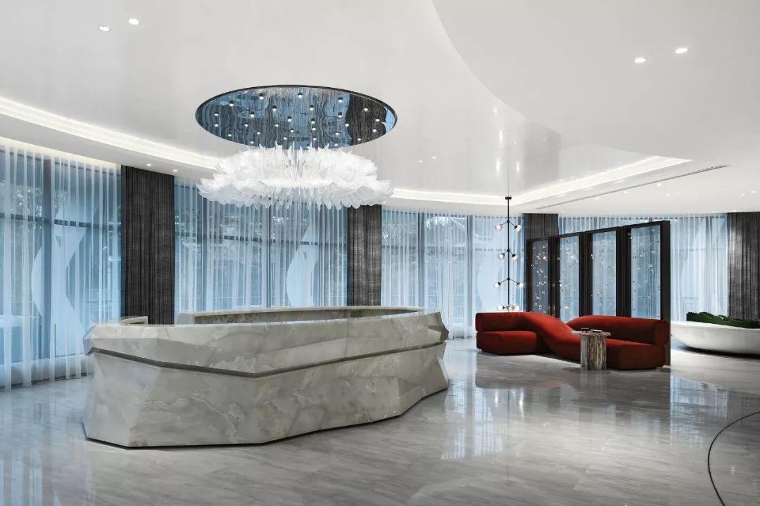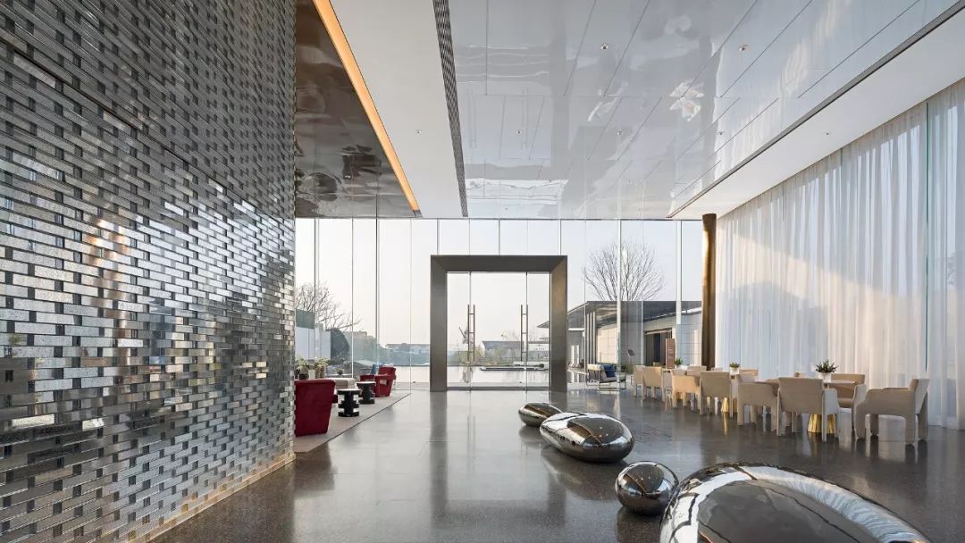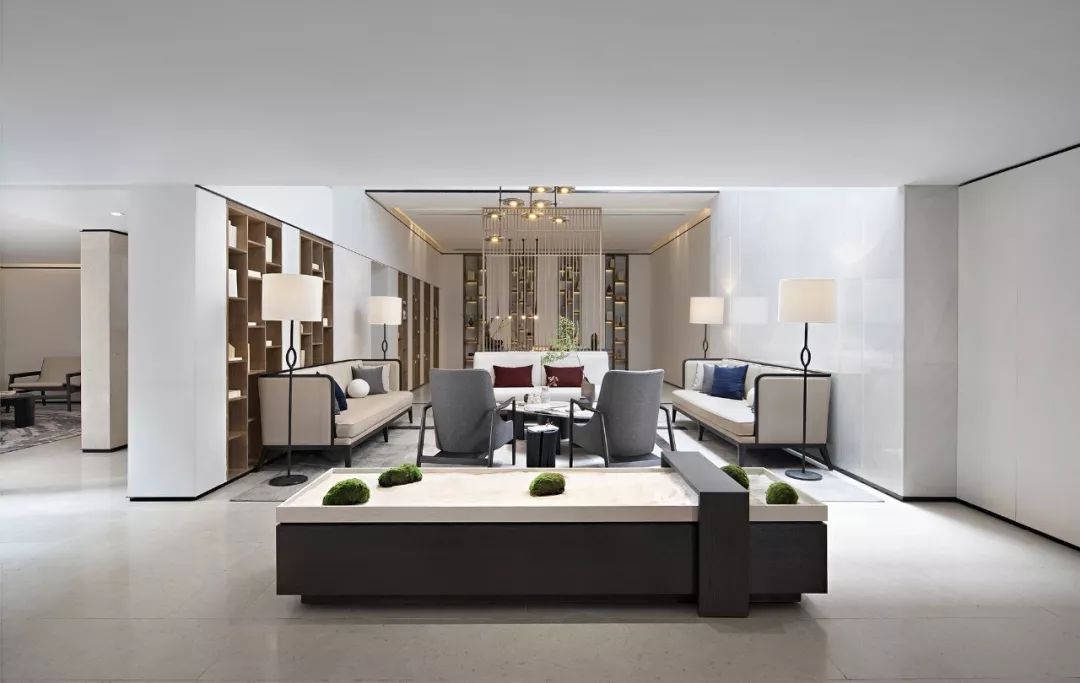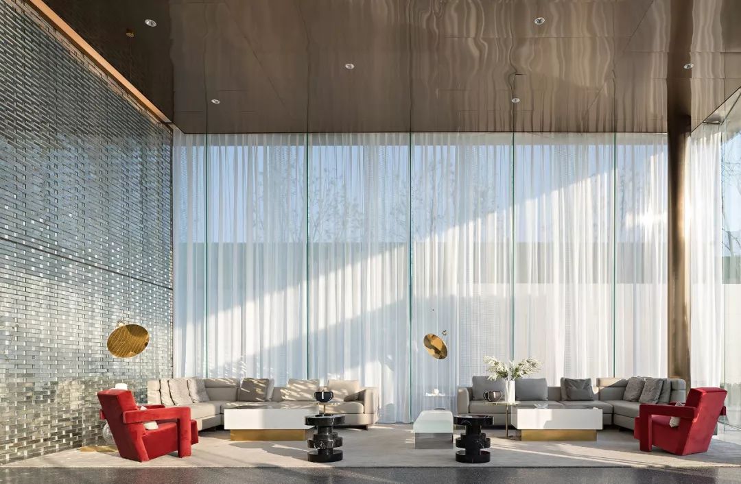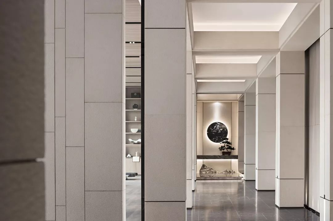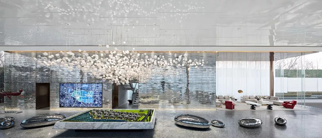在武漢景瑞天賦濱江售樓處項目中,他們嘗試將武漢的自然與詩意,通過設計轉譯與表現(xiàn),融匯現(xiàn)代的簡與藝術的雅,使得山水、自然和光影結于一庭,渲染璨斕似夢的生活詩性。在設計中,意巢捕捉自然與光影之美,將其剎那間的游離定格,以清靜空靈的藝術、與世無爭的冷峻和極簡來書寫空間的詩意,比極簡多一點溫度,比侘寂多一絲圓滿。
