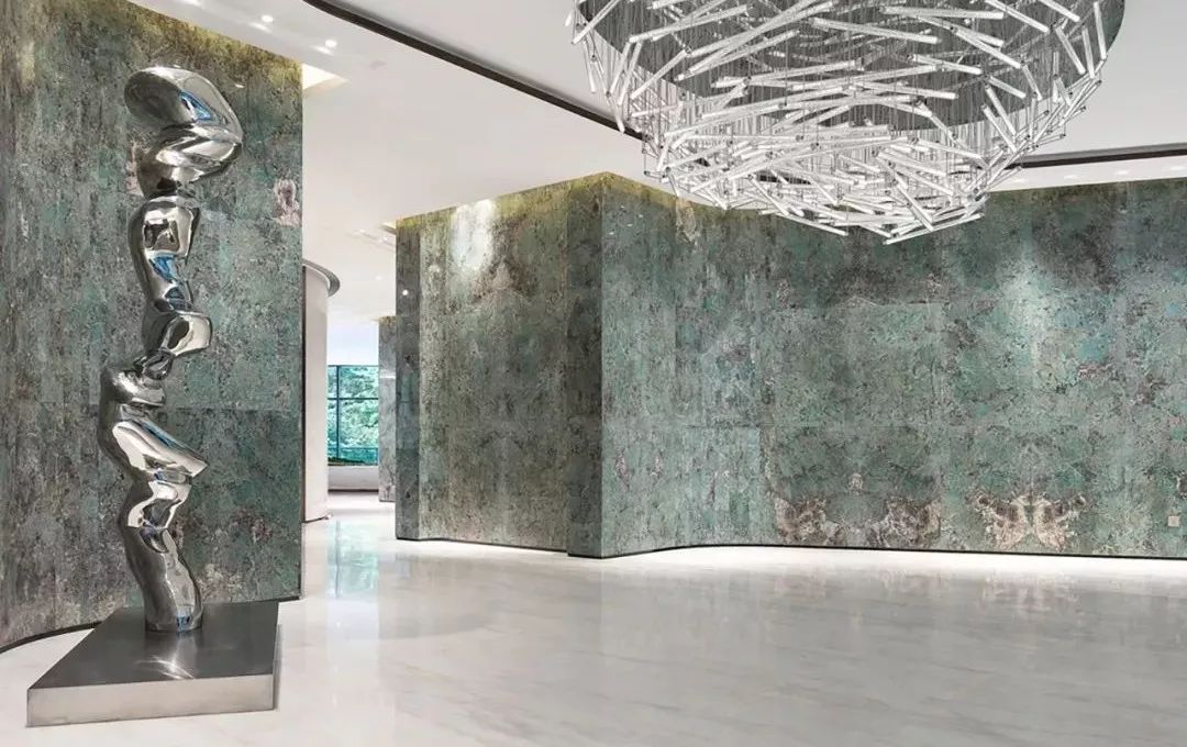 項目陽光城·檀悅的設計,傳承一抹江南煙雨水鄉(xiāng)的文化氣質,以山間流水的形態(tài)為元素貫穿整個空間。散落在空間的不銹鋼雕塑如同溪水中的卵石,垂墜的燈飾形似風中飄搖的風鈴與雨簾,仿佛將紹興水鄉(xiāng)的畫面帶入空間中。山間流水,石澗清云,人們在空間游履的過程中亦能享受到毫不拘泥的情感變奏。