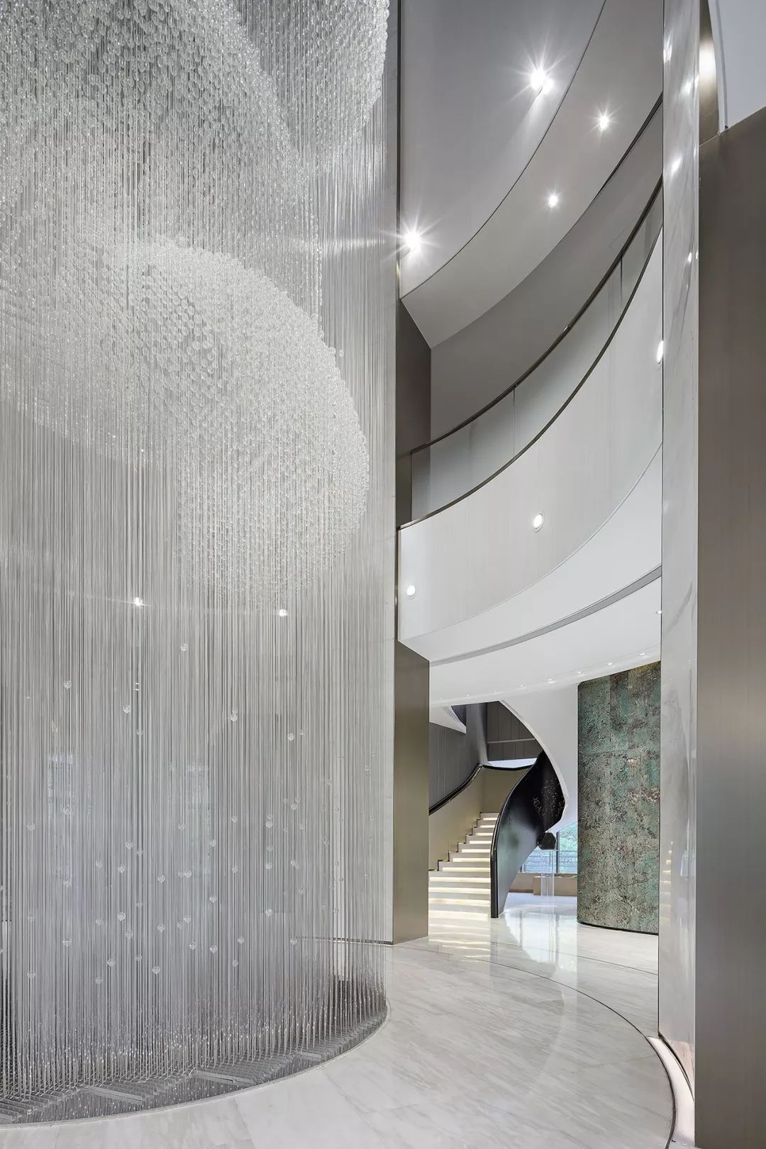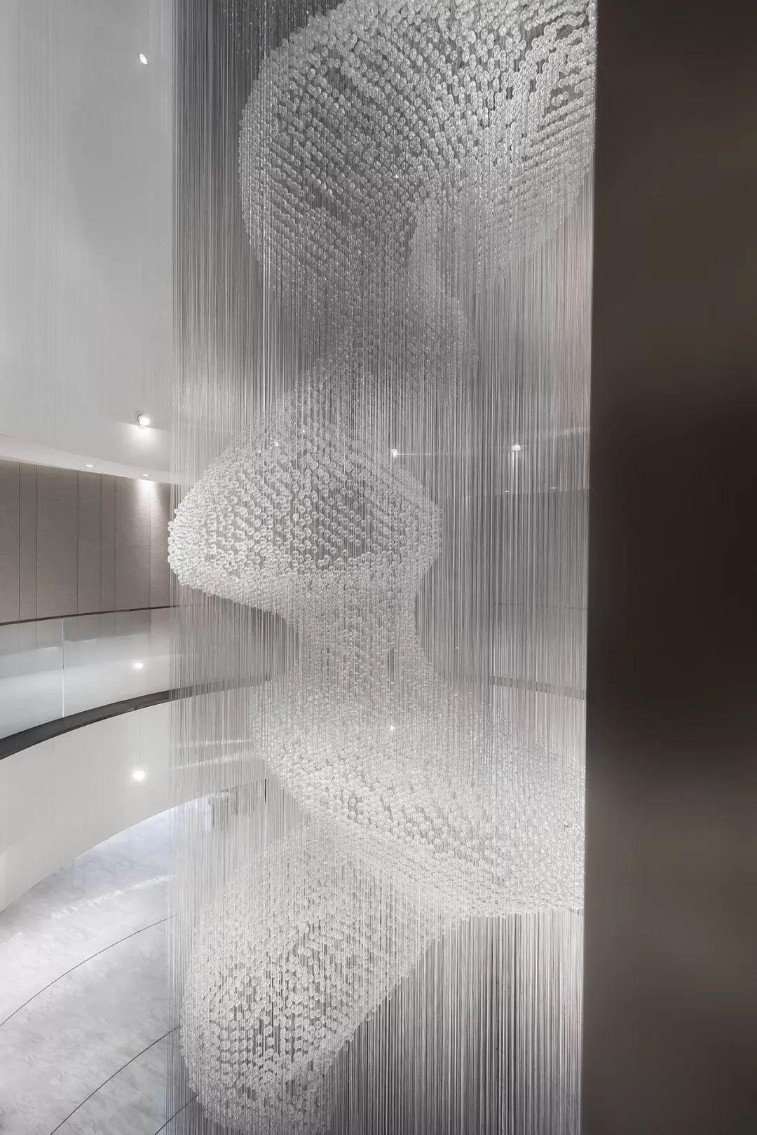 形似銀河的藝術裝置,由近7萬顆光珠精心設計排序串聯(lián)而成,有著天邊星輝云曦的壯闊璨斕之觀感,傳遞著藝術本身給予人的真實而不可定義性的感受。空間中大量前衛(wèi)的藝術裝置,兼以理性、秩序與美,其被提取的抽象自然元素來自蘇杭的水景,增加了張弛自如的韻律,倒映出渾然天成的精神世界。