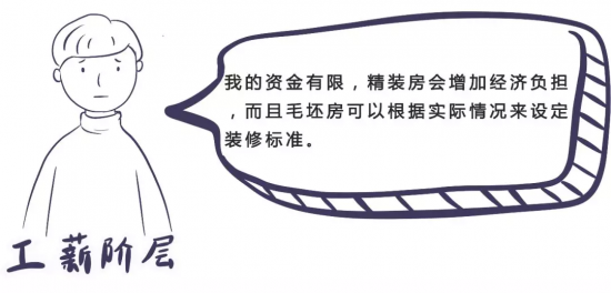 根據(jù)“精裝房”和“毛坯房”的不同特點(diǎn),在買(mǎi)房時(shí)除了要認(rèn)清開(kāi)發(fā)商資質(zhì)和口碑外,根據(jù)自身的需求做選擇才能更加合理,畢竟較適合自己的才是較好的?;诖?,不同職業(yè)特點(diǎn)的購(gòu)房者在“精裝房”和“毛坯房”的選擇上,也可以有不同的選擇。