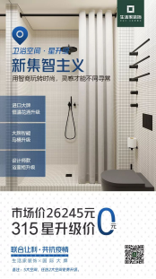衛(wèi)浴星升級——①浴室柜升級,恩里克親選,設計周展示款;②花灑升級,恒溫花灑,嚴選全球前十衛(wèi)浴品牌;③馬桶升級,連體/智能馬桶;④品牌:漢斯格雅、高儀、科勒、杜拉維特、箭牌;