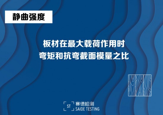 靜曲強(qiáng)度是人造板做為結(jié)構(gòu)部件的重要性能,是家具板材在最大載荷作用時(shí)的彎矩和抗彎截面模量之比,即人造板在受力彎曲到斷裂時(shí)它所能承受的壓力強(qiáng)度,用MPa來表示。