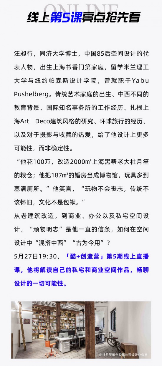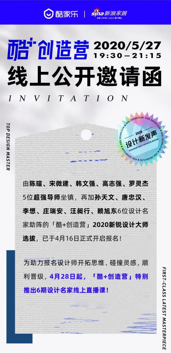 核心提示:酷家樂“酷+創(chuàng)造營”第5期直播即將開播,看85后空間設(shè)計代表人物如何在設(shè)計中表達自我。