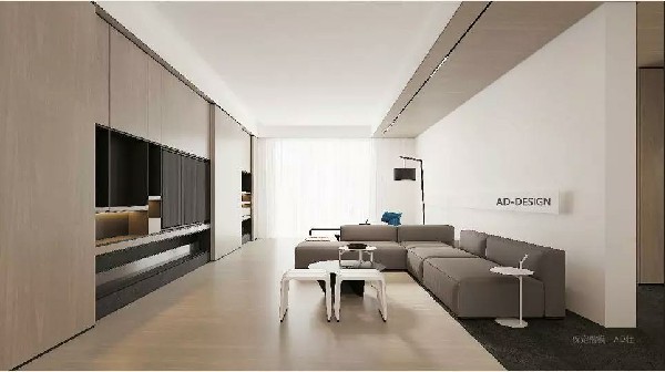 電視柜與壁柜融為一體,組合式的收納隔間完美解決收納問題,可滑動的柜面既不遮擋人的視線,保持客廳整體的通透感。