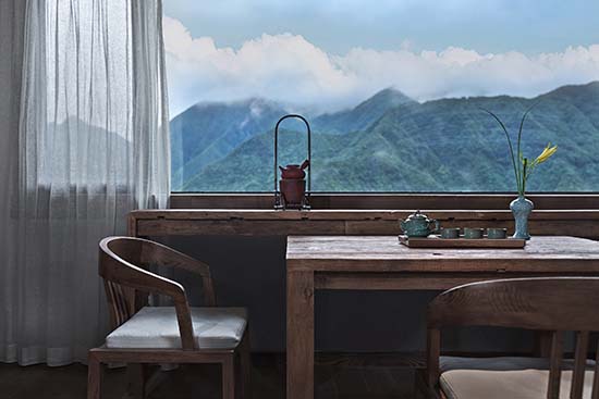 “旗山俠隱”位于浙江遂昌,具有“東方莎士比亞”之稱的明代戲劇家湯顯祖在這里寫就了享譽世界的代表作《牡丹亭》。“旗山俠隱”表達的是一種都市中的俠隱心態(tài),大氣而坦蕩,初看,很有金庸武俠小說中常見的笑傲江湖的氣度,但在江湖的豪邁之氣之外,又包裹了一層現(xiàn)代設(shè)計化的舒適溫暖與平和的調(diào)性。厚重的文化和執(zhí)迷的情感,正是它的迷人之處。