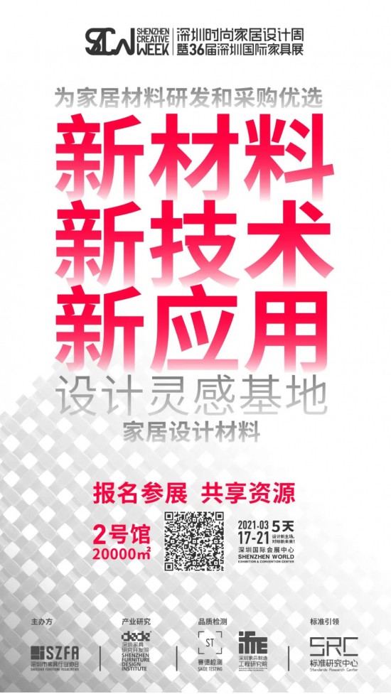 明年3月17-21日的“設(shè)計(jì)靈感基地·家居設(shè)計(jì)材料”展,正是朝著這五大方面去優(yōu)選新材料、新技術(shù)和新應(yīng)用;比如環(huán)保主材、板材、實(shí)木、石材、玻璃、樹(shù)脂、金屬件、飾面板、亞克力、陶瓷、紙類、涂料、膠粘劑、皮革、紡織品、海綿、彈簧、乳膠、功能五金、智能五金、五金配件、封邊條/帶、繃帶、塑料配件等,展會(huì)將成為深圳國(guó)際家具展頭部企業(yè)和全國(guó)3萬(wàn)多家具制造業(yè)對(duì)接創(chuàng)新材料和技術(shù),實(shí)現(xiàn)應(yīng)用與制造升級(jí)的優(yōu)選平臺(tái)。