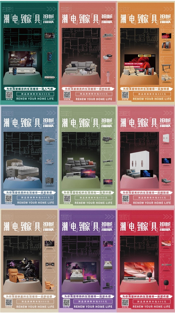 為了全面觸達(dá)更多的消費(fèi)者,讓更多的消費(fèi)者知道此次活動(dòng),并且以最優(yōu)惠的價(jià)格入手最優(yōu)質(zhì)的商品,京東電視影音聯(lián)合京東家具,不僅給到了巨額優(yōu)惠,頭號(hào)京貼每滿300減30,跨品類(lèi)煥新補(bǔ)貼800元,以舊換新最高補(bǔ)貼4000元,還聯(lián)合各大社交媒體平臺(tái)KOL,圍繞活動(dòng)主題,打造創(chuàng)新互動(dòng)話題“潮電煥新家”,并以social海報(bào)的形式,給到消費(fèi)者更貼心的創(chuàng)意搭配和建議。希望借此互動(dòng),傳播“京東有潮「電」,新家「具」溫暖”的活動(dòng)理念,為消費(fèi)者提供更多有趣、實(shí)用且優(yōu)惠的產(chǎn)品。