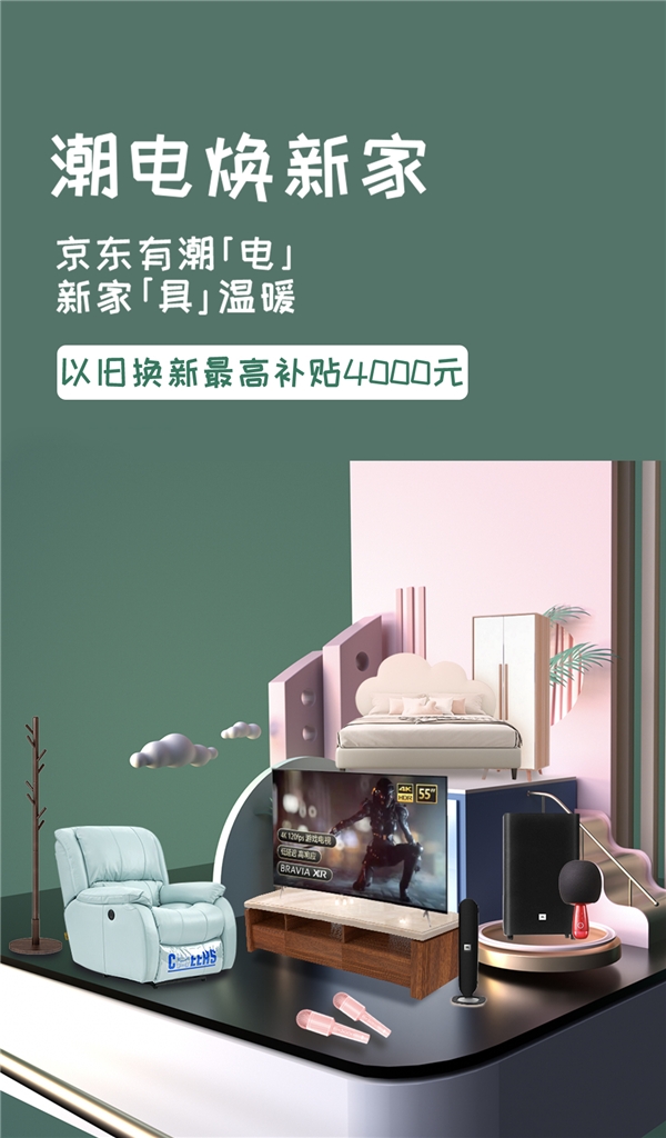 為了讓家中電視影音和家具配得上你的新家,4月15日-4月20日,京東電視影音聯(lián)合京東家具,發(fā)起“潮電煥新家”活動(dòng),頭號(hào)京貼每滿300減30,跨品類(lèi)煥新補(bǔ)貼800元,以舊換新最高補(bǔ)貼4000元,通過(guò)巨額補(bǔ)貼和創(chuàng)意內(nèi)容,不僅致力于為消費(fèi)者提供更多的家裝煥新的產(chǎn)品選擇,也希望借此將“京東有潮「電」,新家「具」溫暖”的活動(dòng)理念傳達(dá)給消費(fèi)者。