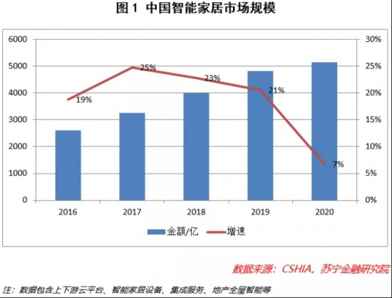 蘇寧金融研究院一項數(shù)據顯示,從2016年到2020年,中國整個智能家居的市場規(guī)模近乎翻番,超過5000億元。隨著疫情式微,智能家居市場有望迎來新一輪爆發(fā),未來五年全球市場規(guī)模的復合增長率有望達到11.6%。