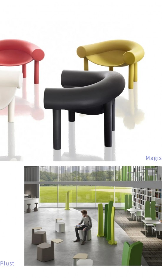 再生的聚合物,高密度聚乙烯HDPE、ABS、尼龍和聚丙烯(PP),不僅從環(huán)境可持續(xù)性的角度出發(fā)是非常有意思的材料,而且這些不規(guī)則的外觀造型和復合顏色構成了新的美感。每個產(chǎn)品都有一個獨特的“存在過”的特征,這種過去的特征可以完美地融入現(xiàn)代環(huán)境。