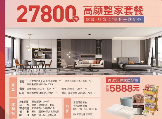 想要搭配好整體的家居風格?家具燈飾一站配齊的看過來,搶開業(yè)高顏值整家套餐,27800元幫你配齊一個家的家具,再送30件家居好物,就等你來搶!