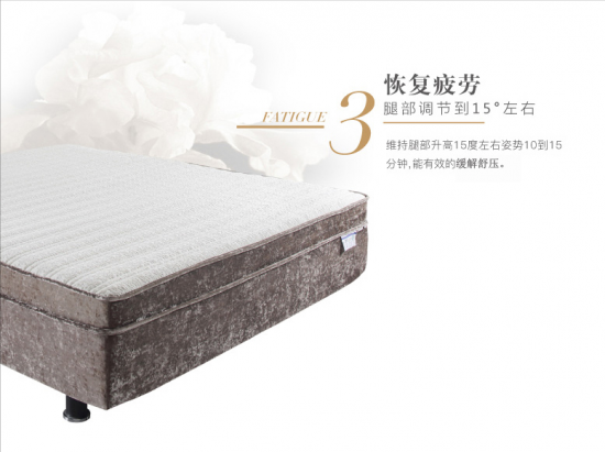 將腿部抬高15°,身體處于緩解疲勞狀態(tài),腿部肌肉可以得到很好的放松,10到15分鐘之后,身體上的疲勞就可以消除。此模式的舒適度可媲美按摩椅,幫助身體恢復(fù)到最佳狀態(tài)。