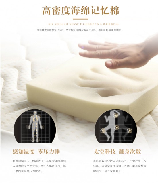 路福S301采用太空記憶棉,可通過特有的感溫記憶粒子感知人體體溫,提供舒適的支撐硬度;同時能夠感知,記憶人體曲線,依照人體起伏完美塑型,服帖保護頸、腰、臀、腿部的自然彎曲。