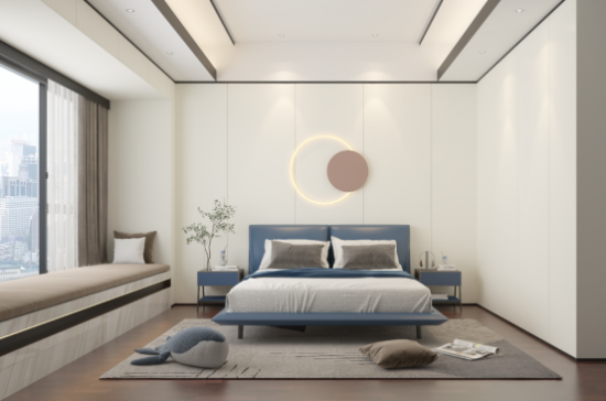 以清爽的白色為主色,定制柜的木色增強(qiáng)空間的自然感與親和力,一定程度上舒緩情緒。CBD家居·金豹 | J039軟床,床身采用棕色和米色搭配,淡雅溫馨,獨(dú)立靠包滿滿立體,自在倚靠,舒適感深入人心。
