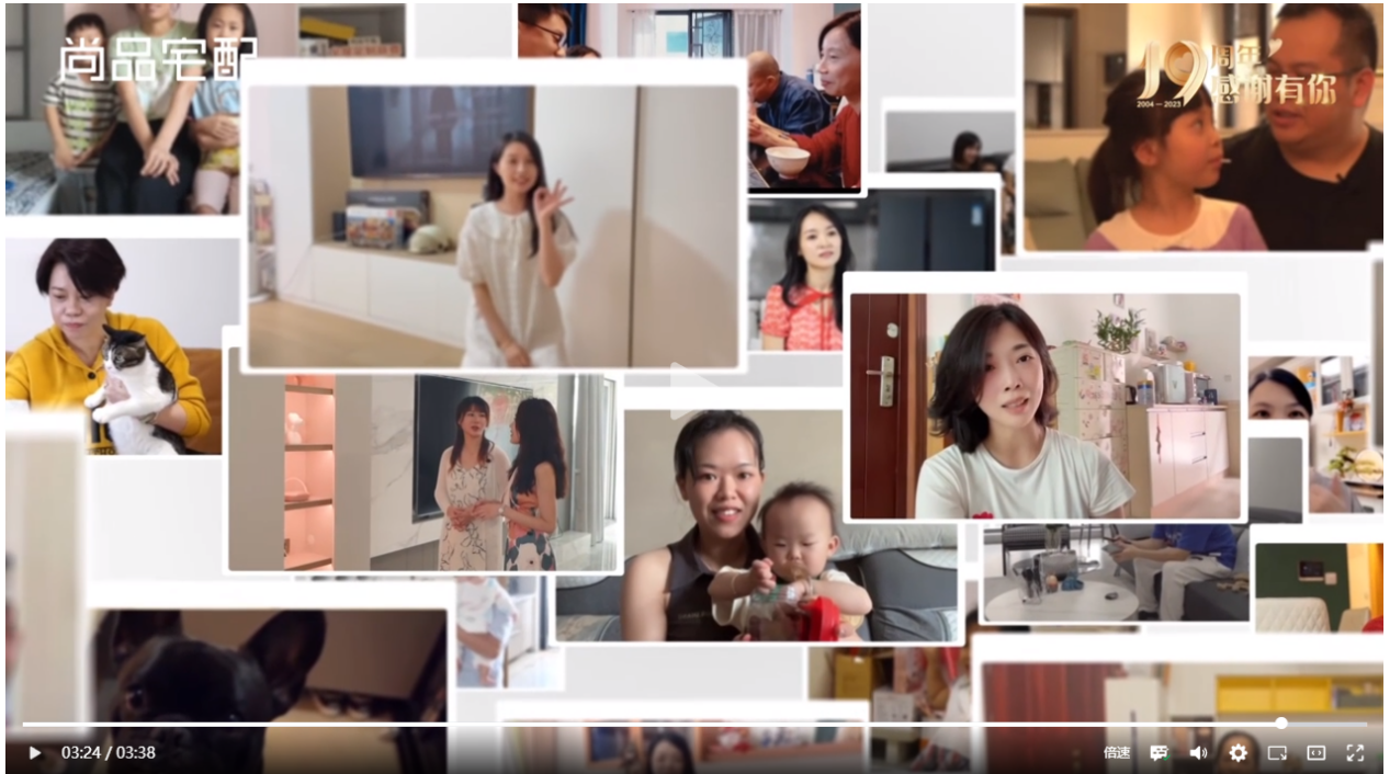 摒棄花哨的自我標(biāo)榜,將焦點對準(zhǔn)客戶服務(wù)。尚品宅配19周年錨定客戶為本的品牌初心,以“19周年,感謝有你”,輸出溫情短視頻,用不同人群的真實用戶反饋,落腳于“感謝每位客戶的選擇,我們一起把房子變成家”,激發(fā)新老用戶的情感共鳴;展現(xiàn)創(chuàng)新服務(wù)歷程,用門店、設(shè)計、安裝、售后等服務(wù)人員的親情服務(wù)故事,敲動消費者的心墻,深入拉近與消費者的距離。