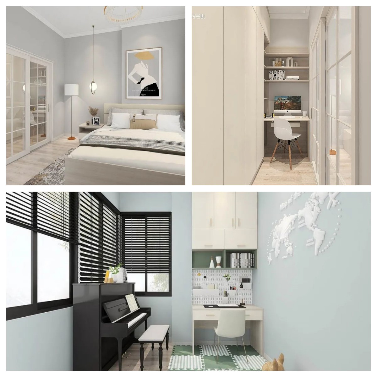 于是,設(shè)計(jì)師巧妙地在衣帽間隔出來一塊游戲天地,并裝上隔音效果很棒的推拉門。讓客戶非常滿意和驚喜。