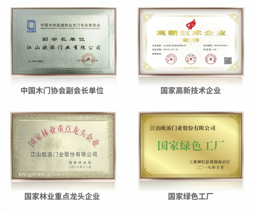 江山歐派門業(yè)股份有限公司是一家集研發(fā)、生產(chǎn)銷售、服務(wù)于一體的專業(yè)制門企業(yè)(2017年2月10日上以兼具品價(jià)比的產(chǎn)品競(jìng)爭(zhēng)力和市場(chǎng)影響力獲得了消費(fèi)者及客戶的一致好評(píng),獲得了中國(guó)木門協(xié)會(huì)副會(huì)長(zhǎng)單位、國(guó)家高新技術(shù)企業(yè)、國(guó)家林業(yè)重點(diǎn)龍頭企業(yè)、國(guó)家綠色工廠等榮譽(yù)和稱號(hào)。2008年,江山歐派在第19類非金屬門”等商品上注冊(cè)了“歐派”商標(biāo)。該商標(biāo)經(jīng)過(guò)持續(xù)多年的使用,已被社會(huì)公眾廣泛認(rèn)知,形成較高的品牌知名度及美譽(yù)度。