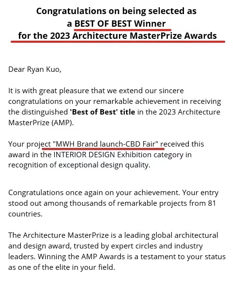 獲2023年美國(guó)建筑大師獎(jiǎng)(AMP)·室內(nèi)設(shè)計(jì)展覽類·年度最佳獎(jiǎng)