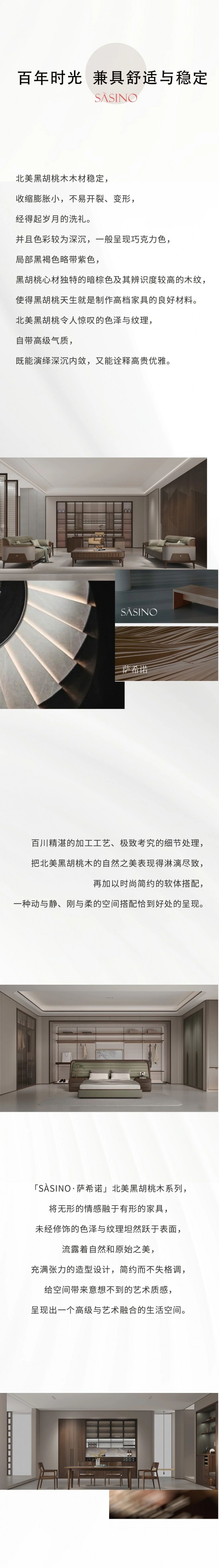 核心提示:百川家具「SSINO·薩希諾」北美黑胡桃系列,以純正FAS級(jí)北美黑胡桃木為主材,紋理特征來(lái)自本身多樣變化的木頭紋路,紋理清晰,層次分明,視覺(jué)跳躍感多以直線紋、大山紋、波浪紋、水滴紋、鳥(niǎo)啄紋、金瘤紋為主。