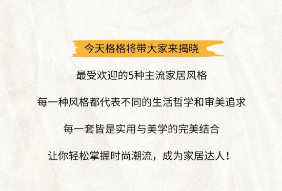 核心提示:最受歡迎的5種主流家居風格,每一種風格都代表不同的生活哲學和審美追求,每一套皆是實用與美學的完美結合,讓你輕松掌握時尚潮流,成為家居達人!