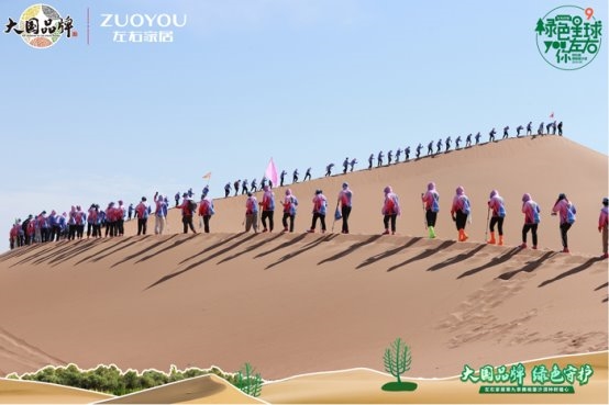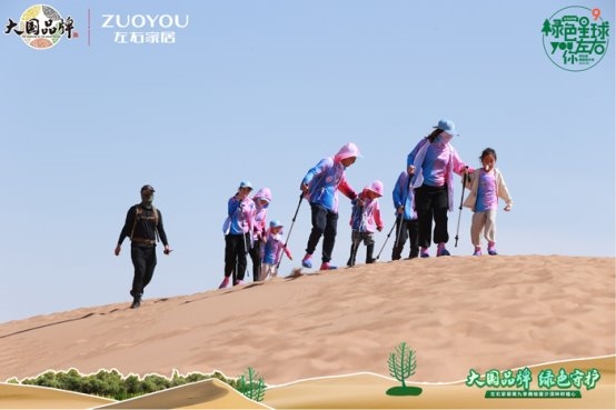 「綠色星球」第9季,左右家居特別邀請到中國綠化基金會副秘書長繆光平、CCTV《大國品牌》總出品人吳綱的一同參與。在左右家居董事長黃華坤的帶領(lǐng)下,公益團(tuán)一行徒步深入騰格里沙漠腹地,用腳步丈量和感受當(dāng)?shù)貒?yán)峻的自然環(huán)境。