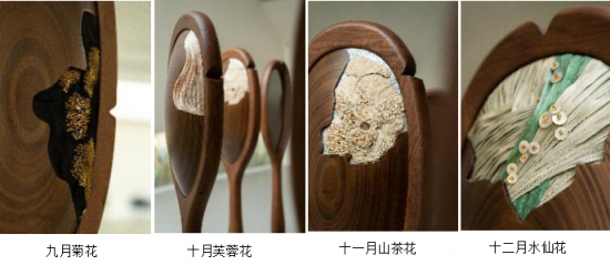 “洄游”中的每一個(gè)花卉元素都在訴說著不同的故事,桃花的設(shè)計(jì)采用了具有柔和曲線的造型,配以細(xì)膩的紋理,象征春天的復(fù)蘇與生命的希望。從梅花的堅(jiān)韌到荷花的優(yōu)雅,每一種花卉都蘊(yùn)含著特定的文化內(nèi)涵與情感共鳴。
