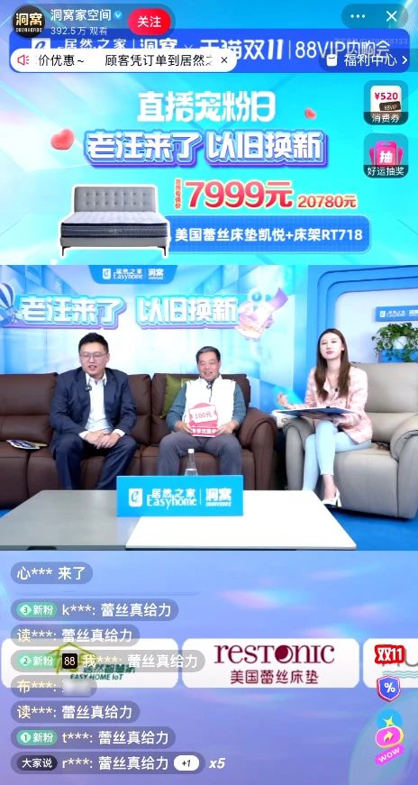在紅星美凱龍“雙11全球狂歡季”的直播間中,陳冠翰總裁向觀眾們介紹了蕾絲床墊的品牌理念以及對(duì)消費(fèi)者睡眠健康的執(zhí)著追求,并分享了選購床墊的關(guān)鍵訣竅。同時(shí)為消費(fèi)者送上力度空前的產(chǎn)品和權(quán)益,直播間人氣居高不下。