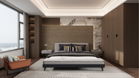 光影之下,淡雅灰CBD家居·HG005軟床柔潤空間,整體設(shè)計簡雅卻平添藝術(shù)氛圍感,好似在千年之外游走、入眠。