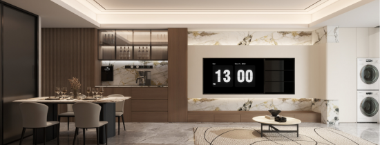 不同的是上層儲物格柜換為原木,簡約利落之外,空間開闊更顯時尚。