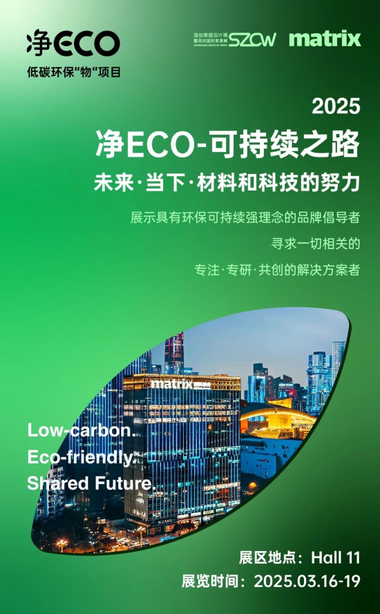 為了探索可持續(xù)、倡導(dǎo)可持續(xù)、推動可持續(xù),深圳家協(xié)與矩陣縱橫攜手打造的低碳環(huán)保“物"項(xiàng)目——凈 ECO 將亮相 2025年3月16—19日的深圳家居設(shè)計(jì)周暨第 40 屆深圳國際家具展,項(xiàng)目融合可持續(xù)的空間概念,可持續(xù)的設(shè)計(jì)、可持續(xù)材料、可持續(xù)認(rèn)證與策展等板塊,探索綠色環(huán)保居家空間解決方案。