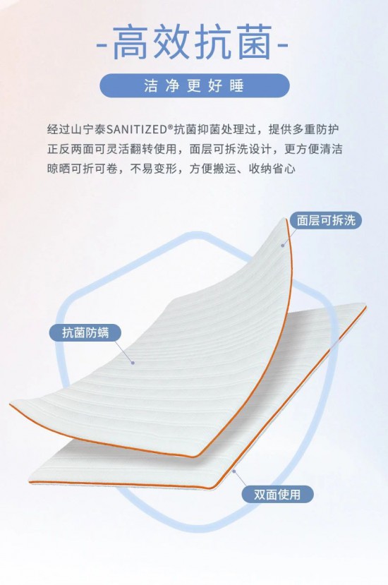 核心提示:山寧泰抗菌防螨,高檔針織面料觸感柔滑細膩,透氣性能良好,防螨、防菌、防霉功效三合一,感知好睡眠,擁抱每一寸肌膚。