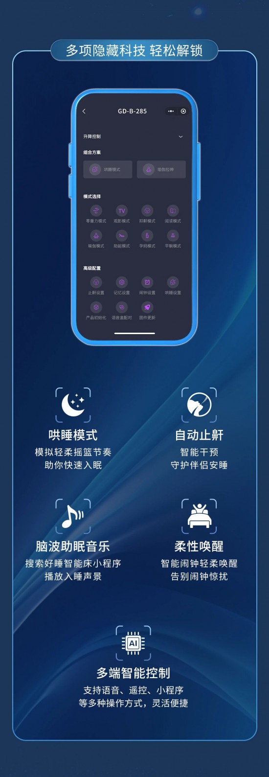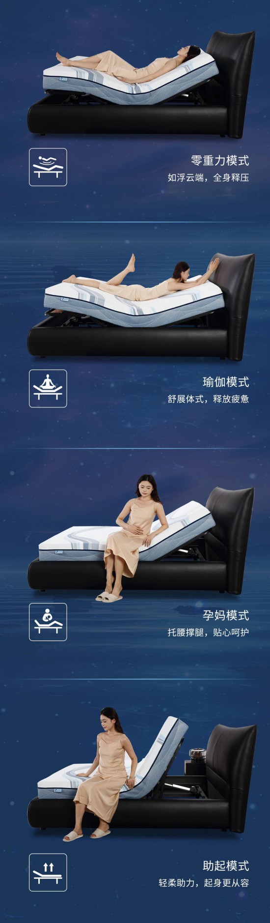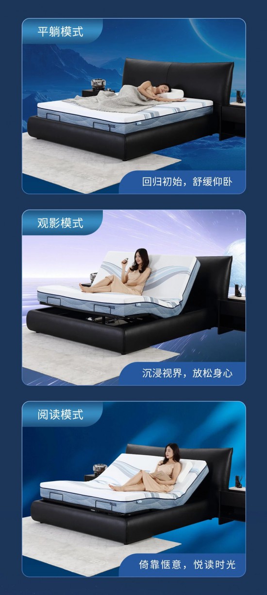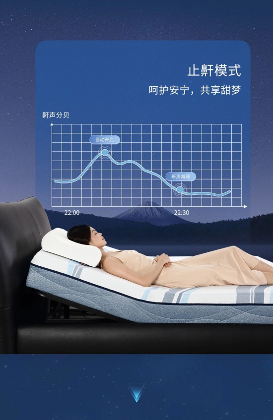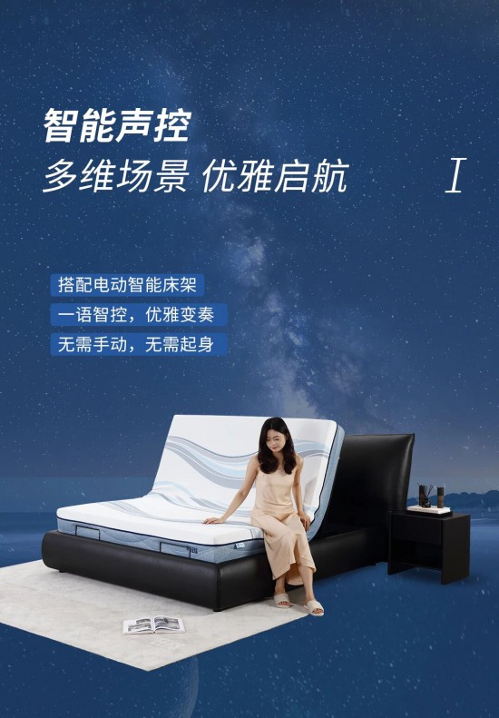 核心提示:智能聲控多維場(chǎng)景,優(yōu)雅啟航,搭配電動(dòng)智能床架一語(yǔ)智控,優(yōu)雅變奏無(wú)需手動(dòng),無(wú)需起身。