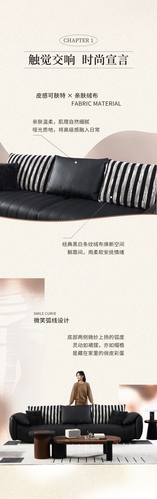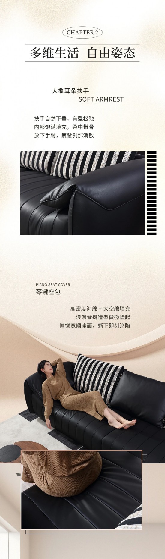 核心提示:純黑簡約,條紋時尚輕快,一體式靠包可隨心變換,定義屬于自己的摩登時刻。