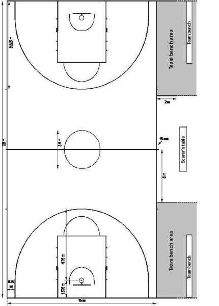 2、標(biāo)準(zhǔn)的比賽場地長度為28m,寬度為15m。