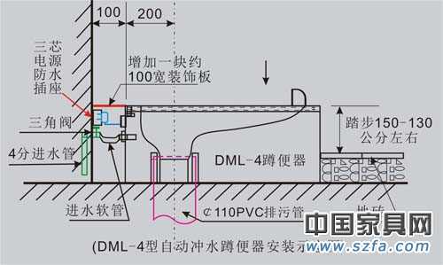 安裝條件:1.進(jìn)水管:4分(¢20)普通水管;2.污水排出管:¢110 普通PVC管;3.220V明裝或暗裝三眼插座。