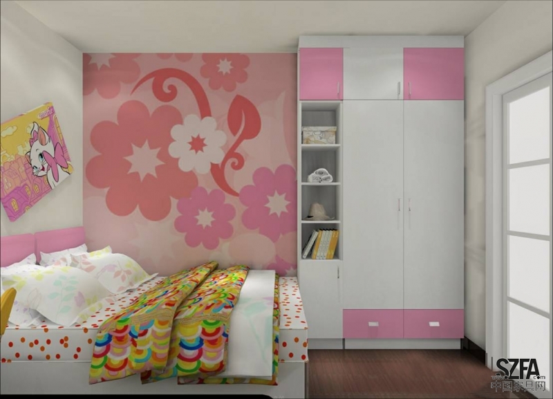 緊接著就是書柜。虛實交接,紅白拼接,給小姑娘提供了開放小空間的同時也為她們想要珍藏的東西提供了一個密閉的小空間。階梯式的書柜很好的銜接到書桌,正好在書桌與書柜之間形成了一個天然的榻榻米柜臺,只要墊上柔軟的墊子,再放置一兩個靠枕,閑暇在這里接受從窗戶穿進來的幾縷暖陽,閱讀幾篇心靈讀物也是再好不過的靈魂享受時光。