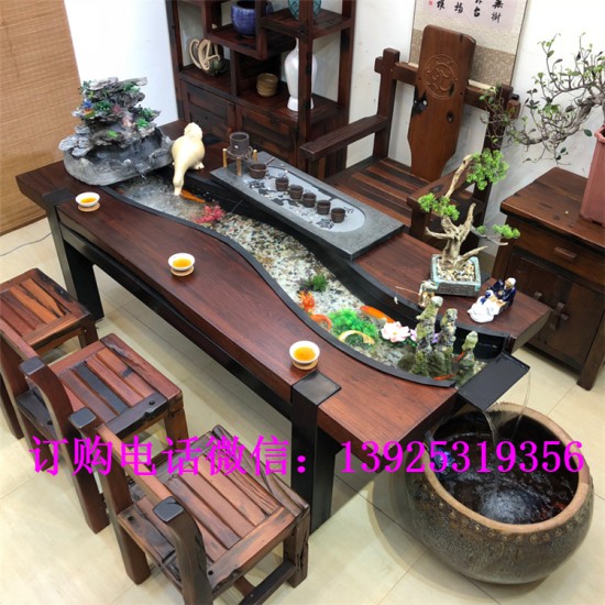 老船木流水茶桌椅子現(xiàn)代簡(jiǎn)約茶幾實(shí)木功夫茶臺(tái)客廳陽臺(tái)泡茶藝桌