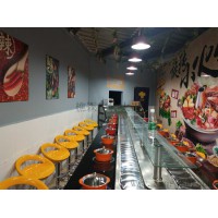 ●回轉(zhuǎn)火鍋輸送設(shè)備可以根據(jù)店面的布局和客戶的要求設(shè)計任何形狀,人和風(fēng)格;