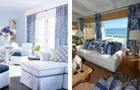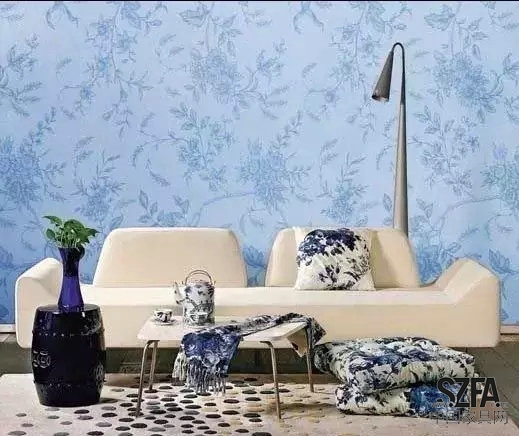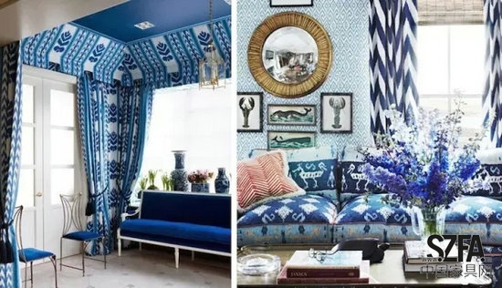 有些人對青花的癡迷程度較高,把家里的沙發(fā)或枕頭表面也做成青花印花,營造了一個很文藝的氛圍。