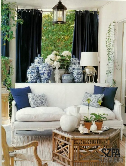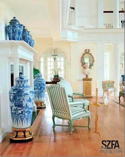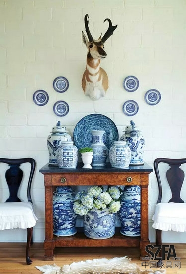青花瓷既可以表達(dá)東方之美,又可以很完美融入西方的室內(nèi)裝飾中,甚至在現(xiàn)代風(fēng)格之下也能很好地融合。
