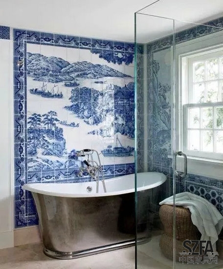然而,有人把青花單獨(dú)做成瓷畫掛在墻上,或者干脆直接整個墻面都用青花裝飾。