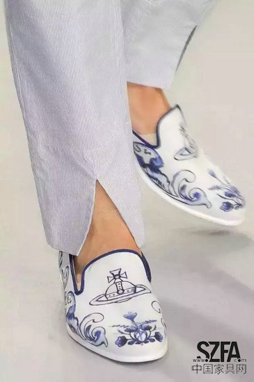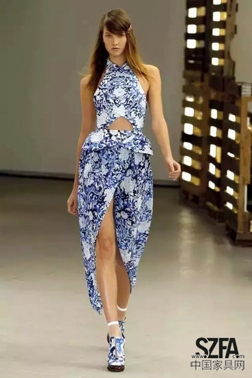 根據(jù)“瘋狂設(shè)計(jì)師”定律,這次瘋狂設(shè)計(jì)師的師弟出來露一下臉,把青花直接印在衣服上,讓名模們?nèi)ゴ?/p>